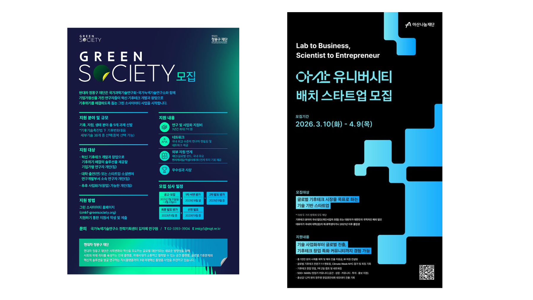 📌 정몽구재단은 올해 3월 31일, 재단 설립자 정몽구 명예회장의 기업가정신을 기반으로 기후변화대응을 위한 기업가형 연구자 육성사업(CMK 그린 소사이어티)과 사회 난제를 해결하는 임팩트 스타트업 육성사업(CMK 임팩트프러너)을 포함하는